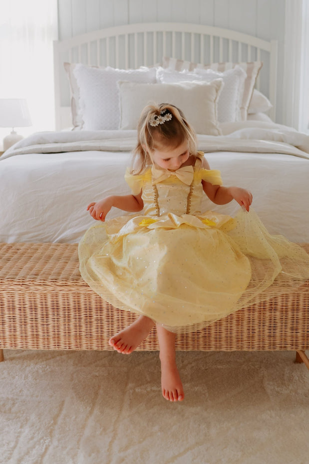 ✨ Bring her golden fairytale to life—order the Sunlit Gold Princess Costume and watch every twirl sparkle!
